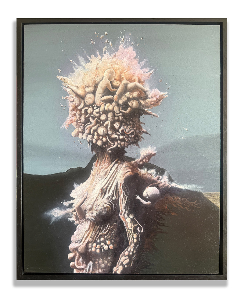 Family marks a return to more traditional painting. Bizarre, illogical forms—female and childlike—move as a mass, expressing legacy, lineage, and the living complexity of family, blending tenderness, chaos, and a dreamlike reflection on inheritance